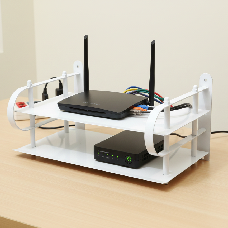 Wall Mounted Router Stand (White Metal Body)